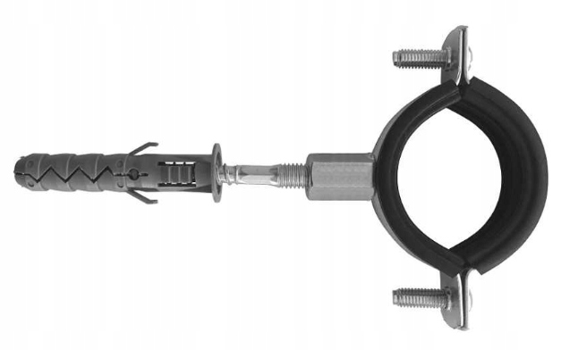 Obejma stalowa z gumą stosowana jest do montażu wszystkich rodzajów rur w układzie pionowym i poziomym. Uchwyty metalowe są przeznaczone do montażu rur z tworzyw sztucznych, ze stali i z miedzi w instalacjach zimnej i ciepłej wody.