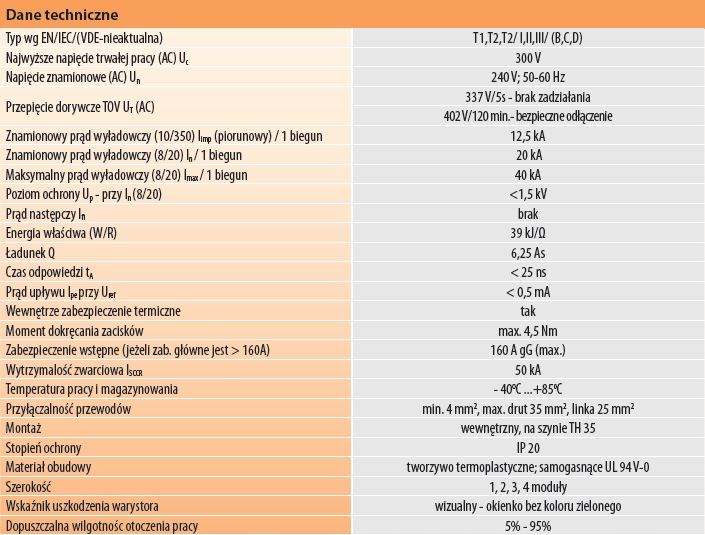 - Prąd wyładowczy Iimp (10/350): 12,5 kA