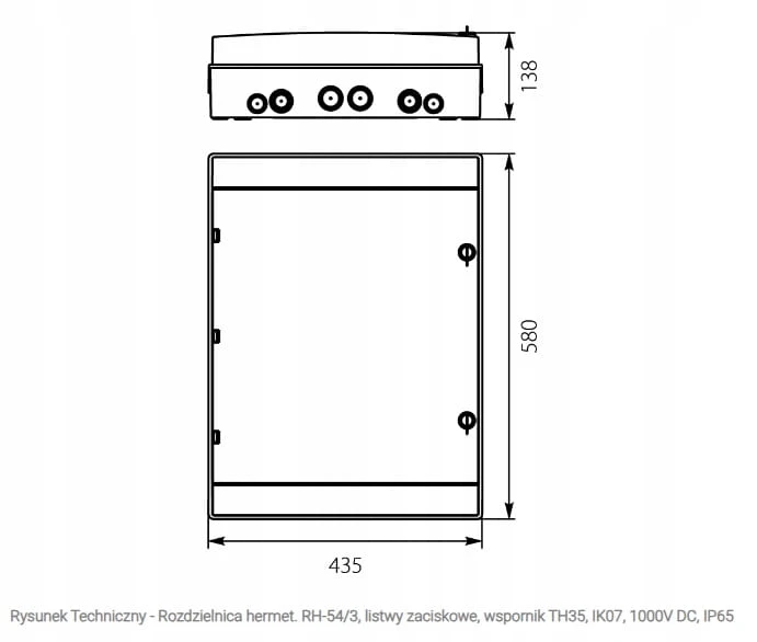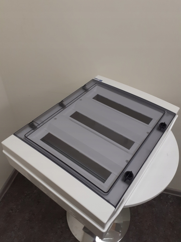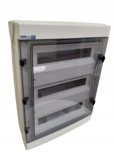 - Przednia część rozdzielni posiada drzwi w kolorze transparentnym wykonane z tworzywa ABS (650C).