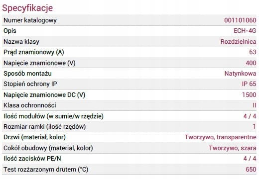 - Liczba modułów (w sumie/w rzędzie): 4 / 4